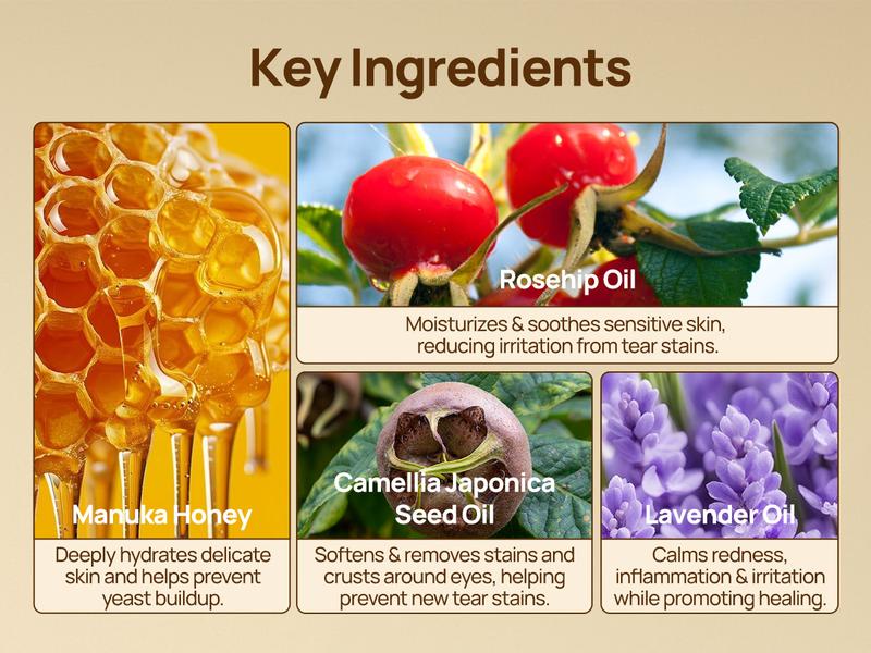 - Gently removes tear stains